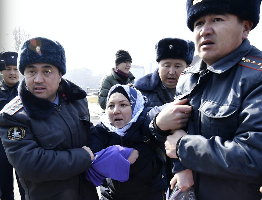 In the Kyrgyz capital Bishkek police detained dozens of women’s rights activists shortly after masked men reportedly attacked marchers. Activists say women’s rights are deteriorating in the country. K.M. Chaudary/AP